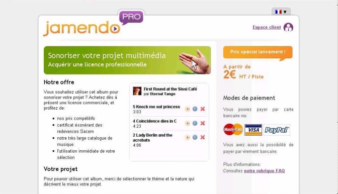 Début 2009, alors même que M. Kratz explique doctement que "[son] métier, c’est la désintermédiation d’artistes autoproduits", Jamendo™ lance une nouvelle opération commerciale intitulée (ou brandée) Jamendo Pro. L’activité de cette subdivision, si je comprends bien, se nomme licensing et consiste à vendre des exceptions de licence, réinventant d’ailleurs une pratique du milieu informatique Libre : moyennant finance, le client s’exonère des clauses de la licence de l’œuvre (Libre ou non-Libre, copyleft ou non, non-commerciale ou pas). En d’autres termes, nous ne sommes plus dans le Libre mais dans le libre de droits et c’est d’ailleurs comme cela que le site se présente initialement :