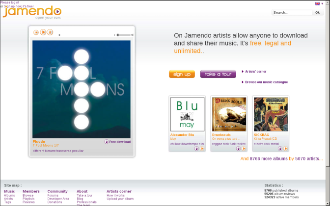 Notons que nulle part dans cette phrase, pas plus que dans la suivante, n’apparaît le mot "Libre". On parle de gratuité, terme très différent et éventuellement orienté (j’y reviens). Je remarque par ailleurs, ce qui pourrait sembler évident mais ne l’est pas nécessairement, que sur Jamendo l’unité de mesure de la musique est l’album.