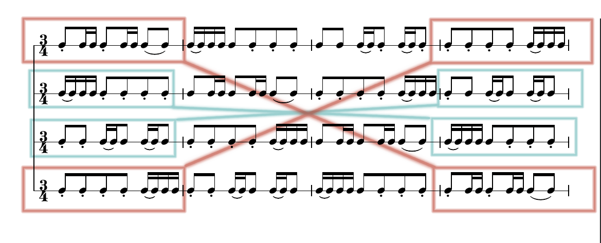 Plus rigoureuse, l’organisation rythmique est entièrement gouvernée par des principes de symétrie :