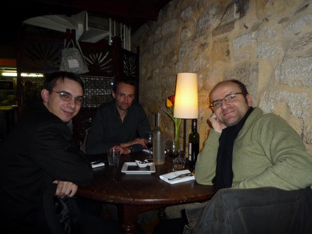 (Juste au passage : Jochen vient de m’envoyer une photo où l’on nous voit ensemble, en compagnie de Lewis Trondheim. Cette photo devrait achever de convaincre tous ceux de mes lecteurs qui ne m’ont pas vu depuis plusieurs années et qui ne me croient pas quand je les préviens que j’ai pris 30 kilos pendant l’écriture de l’opéra.)