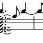 J’ai exposé ci-dessus le projet de cette deuxième "danse", et mes doutes quant au résultat atteint. Si l’influence des rythmiques sud-américaines ou cubaines ne se perçoit sans doute plus vraiment, mon idée de départ était bel et bien un montuno [8] sur quatre notes seulement. En partant de double-croches, j’explore ensuite diverses combinaisons rythmiques que l’on pourrait qualifier de "syncopées" à des degrés divers.