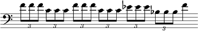 Quoiqu’il en soit, ce motif de notes répétées est construit sur un bête balancement en quarte descendante : fa - do [11], ce qui contribue à l’ultra-polarisation du langage musical que j’évoquais plus haut : notre inconscient musical collectif entend immédiatement un rapport dominante-tonique. Autre balancement, la seconde mineure descendante fa - mib, qui fait elle aussi signe vers une polarisation sur fa — d’une façon encore plus primitive d’ailleurs, puisqu’il n’y a ici même plus de note sensible.