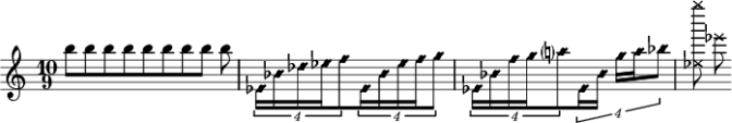 La gamme utilisée, bien que très clairement de mi bémol majeur, met en oeuvre un la naturel dans l’aigu. On pourrait y voir un mode lydien (le mode de fa). Cependant je propose une autre explication : si l’on regarde le spectre acoustique d’une note (autrement dit, pour une fréquence f donnée, l’ensemble des fréquences 2f, 3f, 4f, ... nf qui vibrent en sympathie avec elle), l’on se rend compte que le son 11 correspond à une quarte augmentée (théoriquement trop basse d’un quart de ton, mais les synthétiseurs sont conçus pour des hauteurs de tempérament égal). Utiliser ce la naturel "sonne" donc mieux, donne à la gamme une lumière qu’elle n’aurait pas autrement.