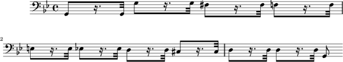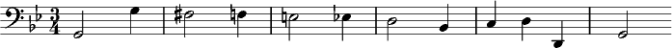 sol,2 sol'4 fad2 fa4 mi2 mib4 re2 sib4 do re re, sol2 }