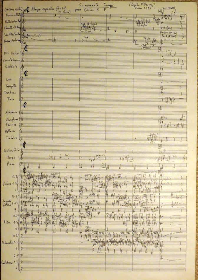 Ces feuilles grossièrement photocopiées se délitaient dès que l’on essayait d’y passer un coup de gomme ; elles accueillirent tant bien que mal, l’année suivante, les six premières pages de ma pièce "Corail" et le premier tiers de mon quatuor à cordes en 2003. Je n’ai, à ce jour, terminé aucune de ces partitions.